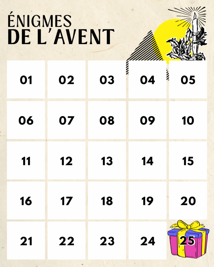 Une nouvelle énigme par jour jusqu’au 25 décembre.